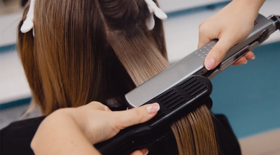 بعد انتهاء مدة الانتظار، تعد هذه خطوة مهمة من خطوات عمل بروتين الشعر بالصور، حيث يجب عليك الحرص اثناء تجفيف البروتين بالمكواة من خلال اختيار درجة الحرارة المناسبة لشعرك، ثم قومي بتمرير المكواة من 5 الى 7 مرات على الخصلة بعد تقسيم شعرك لخصل.