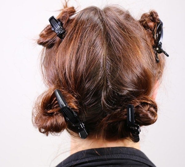 قسّمي شعرك إلى أربعة أقسام متساوية باستخدام مشابك، فهذه الخطوة مهمة من خطوات عمل بروتين الشعر بالصور ستسهل عليك تطبيق البروتين بالتساوي، وتضمن تغطية كل خصلة. تعتبر هذه الخطوة ضرورية لضمان توزيع البروتين بشكل كامل ضمن طريقة عمل بروتين للشعر في المنزل.